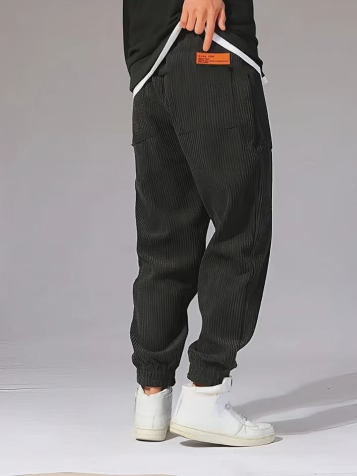 The ribbed corduroy texture adds a stylish touch, while the relaxed fit and tapered legs ensure a modern silhouette. Perfect for lounging, casual outings, or urban fashion looks.