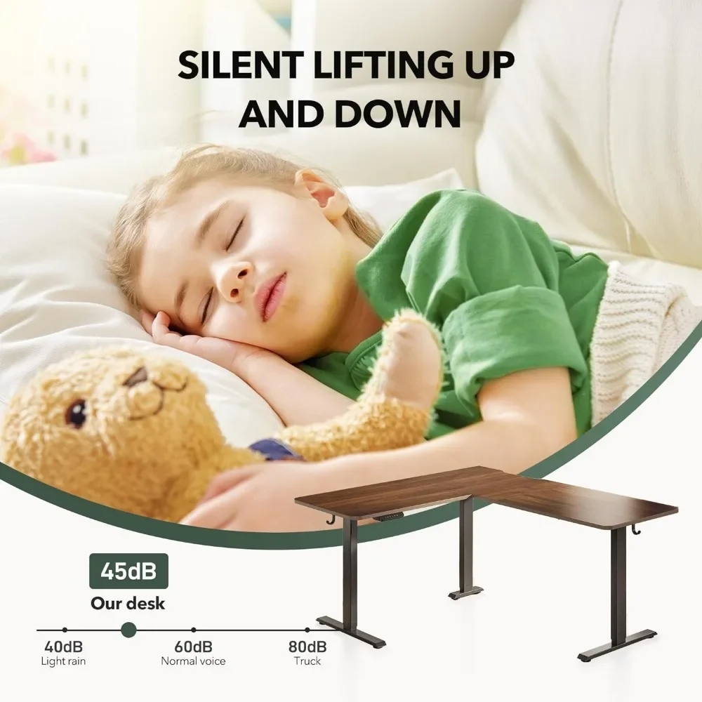 - 「Powerful Lift System」The electric lift system with sturdy steel. The L shaped stand up desk contains an industrial-grade steel frame that able to support up to 176 lbs. Maximum lifting speed: 20mm/s, no-load noise≤55db.