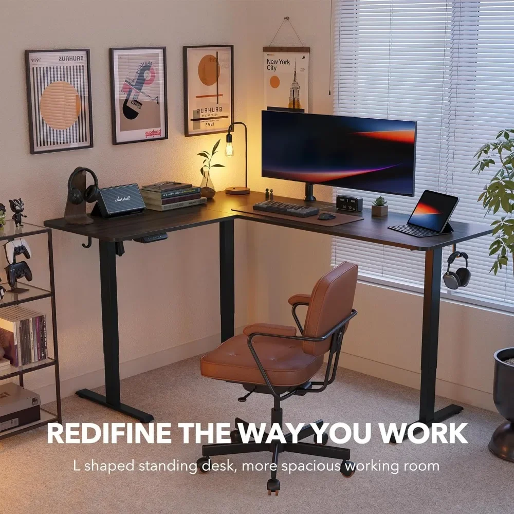 - 「Electric Adjustable Height 」L shape standing desk has 3 preset memory buttons to customize your desired heights from 27.6" to 46.9" with collision-avoiding feature, smooth convert sitting to standing.