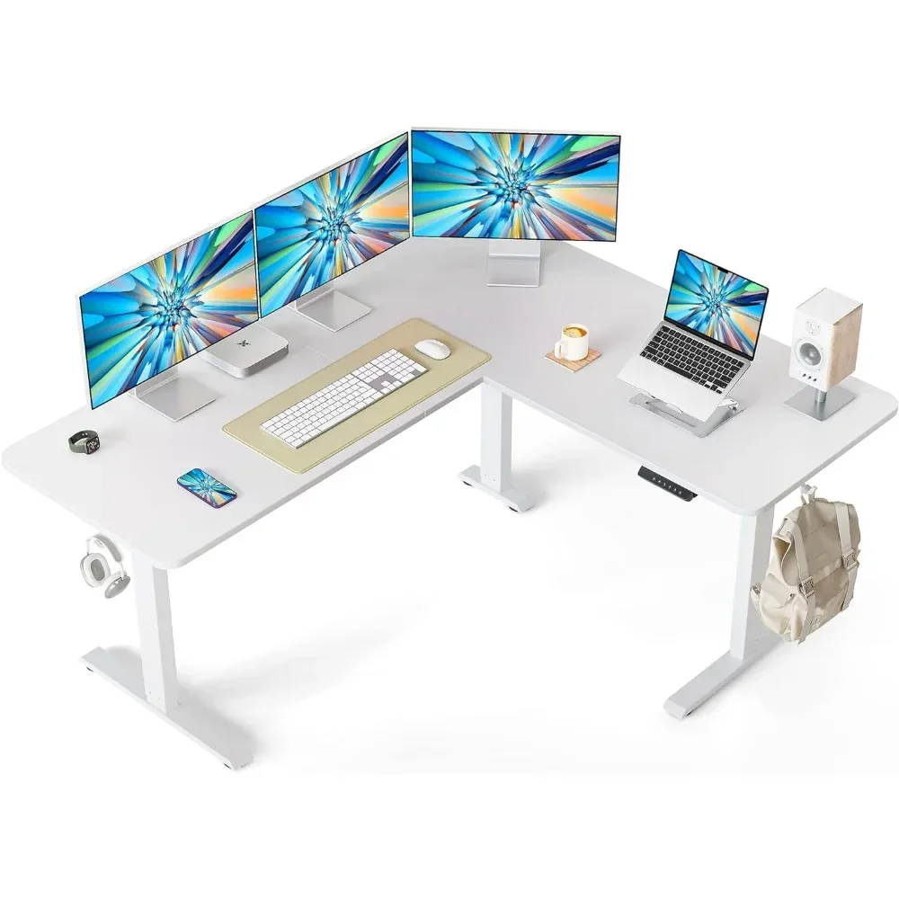 - 「63" Decent Workspace」63*55" L shaped adjustable height desk can hold 3 desktop PCs, 1 laptop and other office supplies, then you have plenty of space to work or gaming, providing you with enough space for work or gaming.