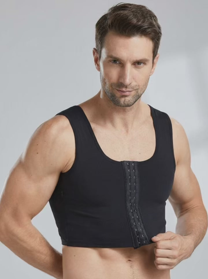Featuring a strong front hook-and-eye closure, this compression vest delivers adjustable support to help reduce the appearance of gynecomastia (man boobs), compress the waist, and improve posture throughout the day. It’s ideal for daily wear, under formal shirts, or during workouts for added muscle control and back alignment.