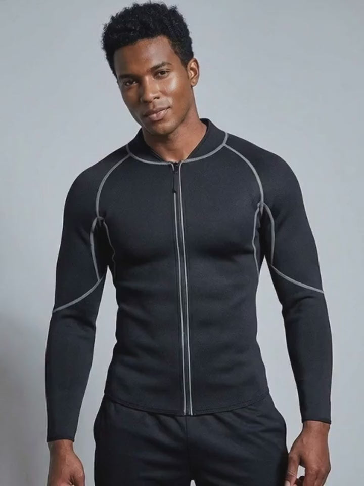 Get next-level sweat and sculpting results with this Men’s Sauna Sweat Jacket — a full-coverage long sleeve body shaper engineered to trap heat, increase sweating, and boost your fat-burning potential during workouts or everyday wear. Made from advanced heat-trapping polymer fabric, this compression fitness shirt raises your core temperature and delivers the sauna effect to help you lose water weight and tone faster.