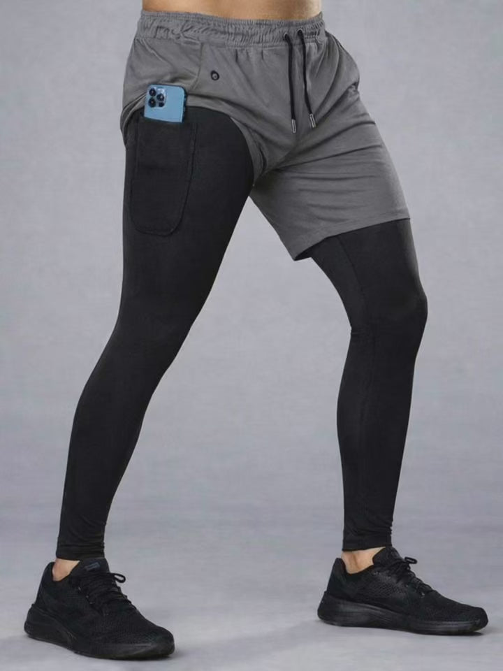 These men’s 2-in-1 running pants combine compression leggings with lightweight training shorts for maximum performance and style. The built-in compression layer supports muscles, improves blood flow, and enhances workout endurance, while the outer shorts provide coverage and a street-ready look.