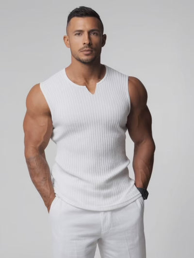 Upgrade your wardrobe with this men’s ribbed slim fit tank top, crafted from soft, stretch-knit fabric for all-day comfort. The ribbed texture and slim cut highlight your physique while keeping a clean, stylish look. Featuring a modern notched neckline and wide shoulder straps, it’s perfect for layering under shirts, pairing with jeans, or wearing solo on warm days.