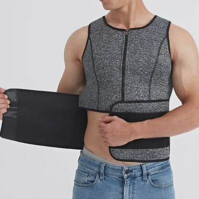 Get the ultimate fat-burning combo with this Men's Sauna Sweat Vest with Waist Trainer — a full-body slimming tank top designed to help you sweat more, shape your torso, and accelerate weight loss results. This 2-in-1 men body shaper and waist trimmer belt targets your core, chest, and back while increasing internal body temperature to produce a powerful sauna effect.
